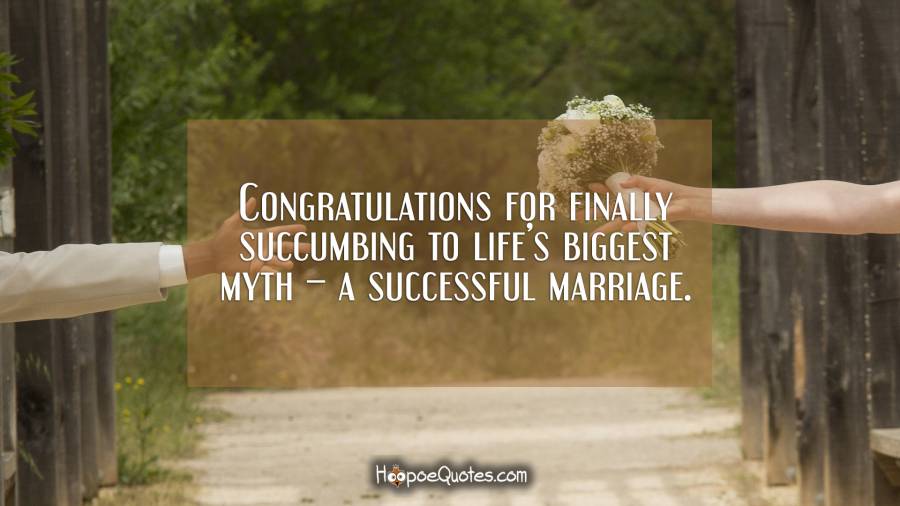 Congratulations for finally succumbing to life’s biggest myth – a successful marriage.