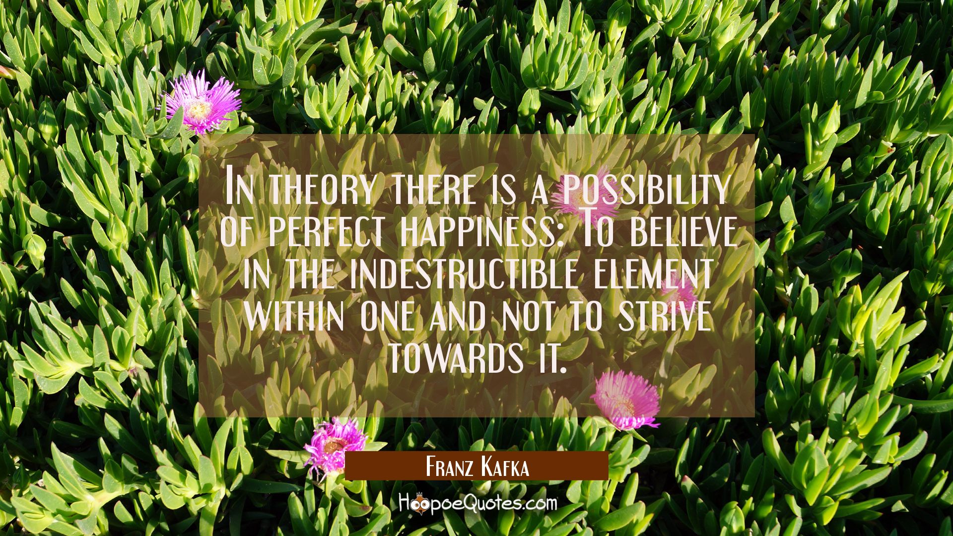 In theory there is a possibility of perfect happiness: To believe in the indestructible element within one and not to strive towards it.