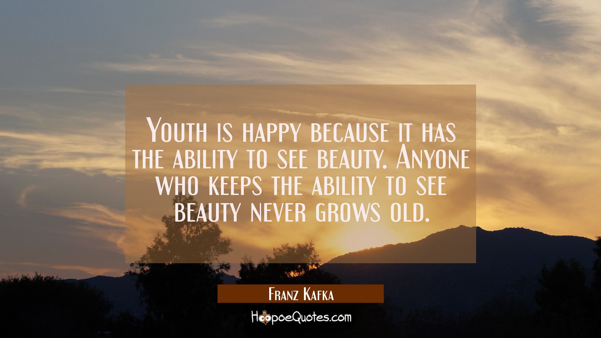 Youth is happy because it has the ability to see beauty. Anyone who keeps the ability to see beauty never grows old.