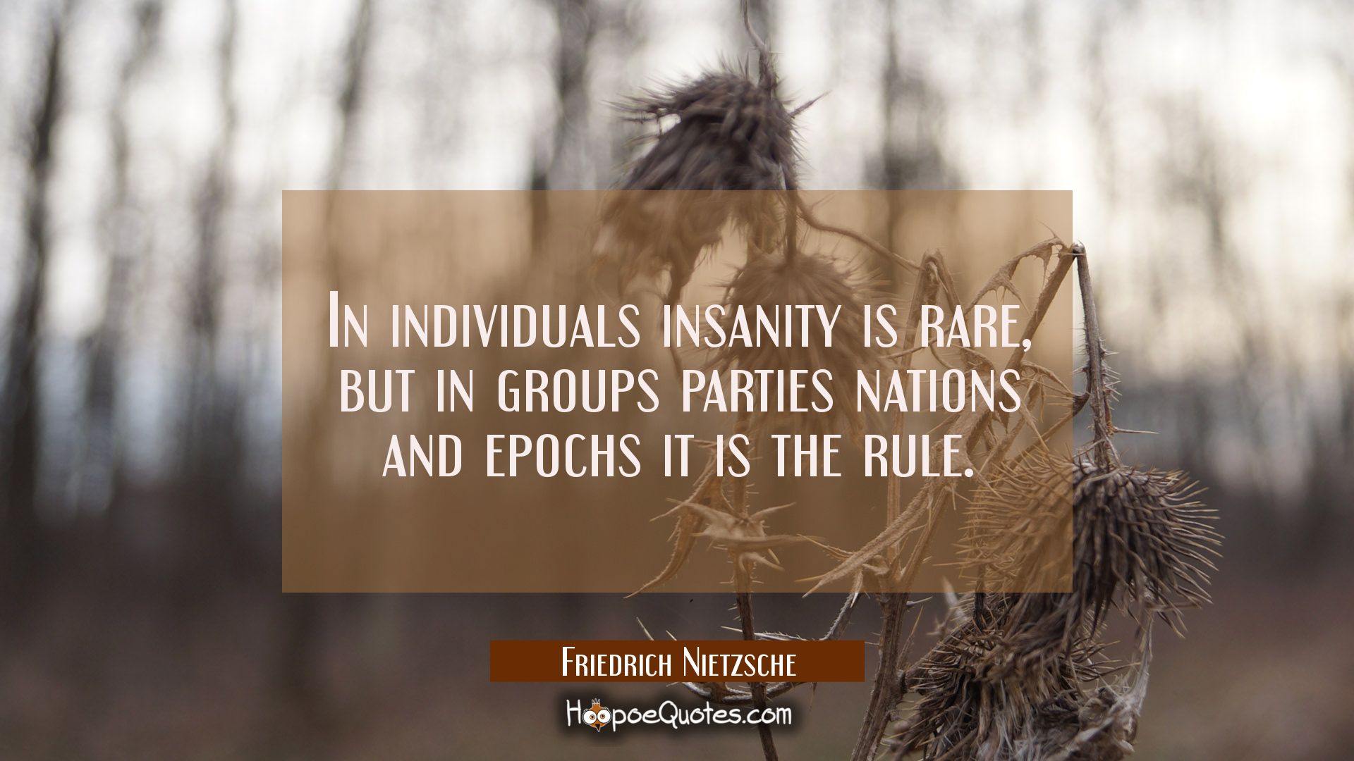 In individuals insanity is rare, but in groups parties nations and epochs it is the rule.