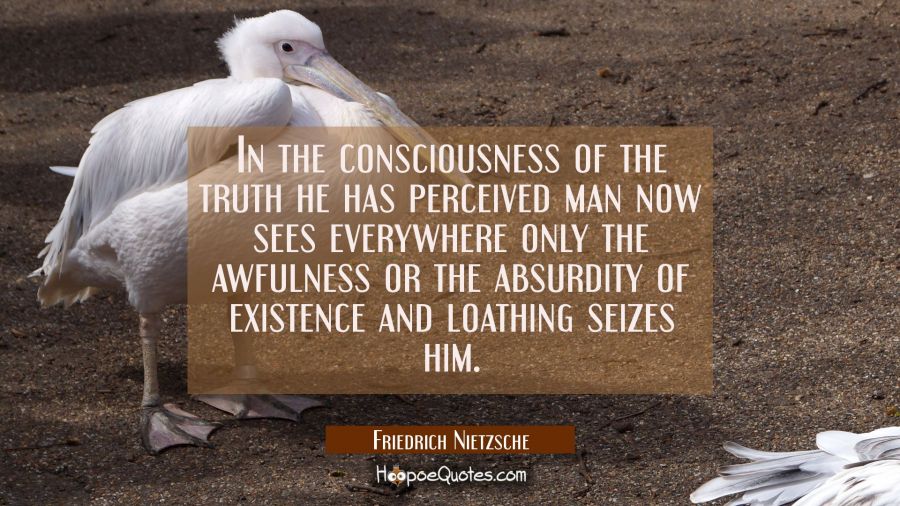 In the consciousness of the truth he has perceived man now sees everywhere only the awfulness or the absurdity of existence and loathing seizes him.