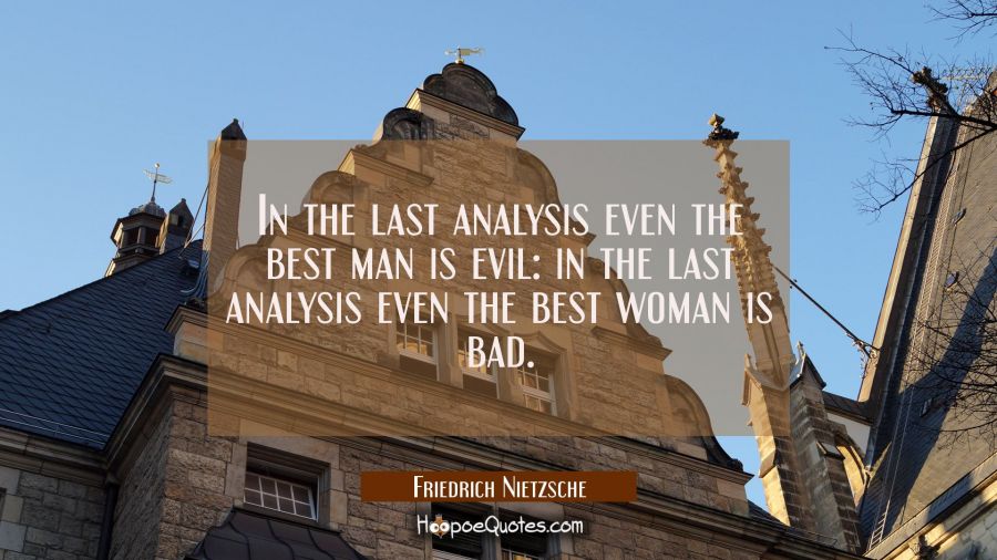 In the last analysis even the best man is evil: in the last analysis even the best woman is bad.
