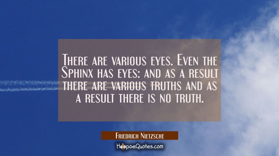 There are various eyes. Even the Sphinx has eyes: and as a result there are various truths and as a result there is no truth.