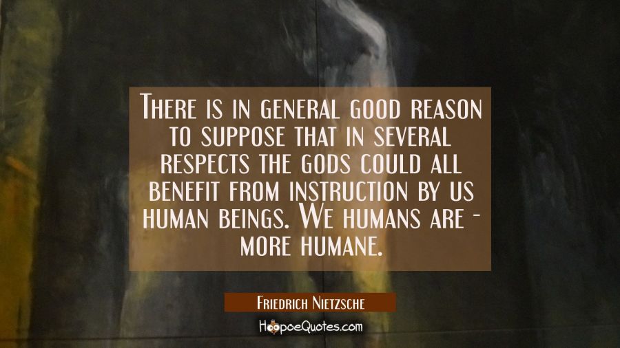 There is in general good reason to suppose that in several respects the gods could all benefit from instruction by us human beings. We humans are - more humane.