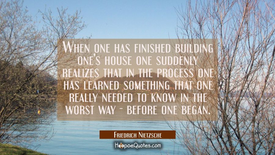 When one has finished building one's house one suddenly realizes that in the process one has learned something that one really needed to know in the worst way - before one began.