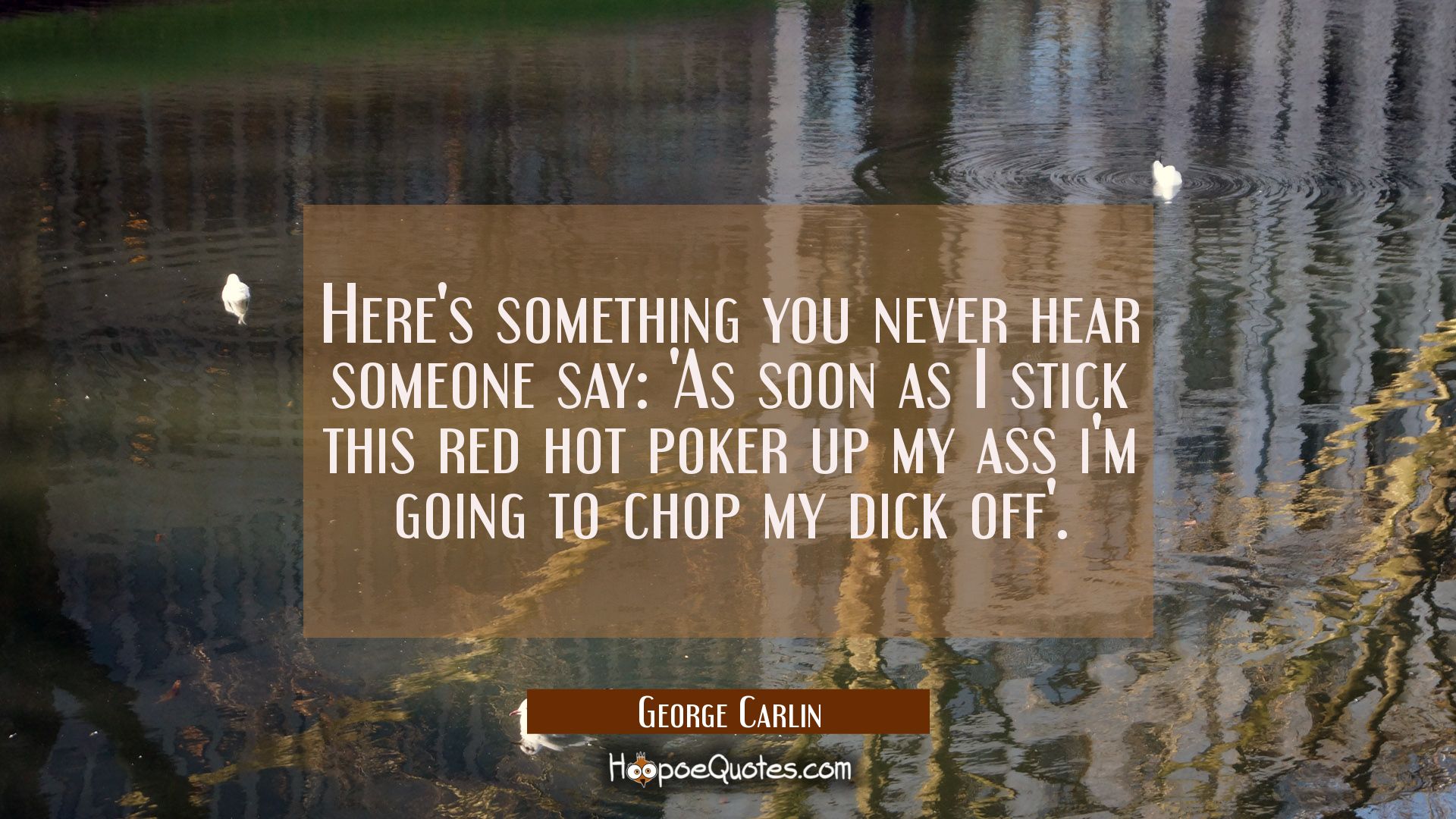Here's something you never hear someone say: 'As soon as I stick this red hot poker up my ass i'm going to chop my dick off'.