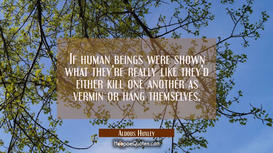 If human beings were shown what they're really like they'd either kill one another as vermin or hang themselves.