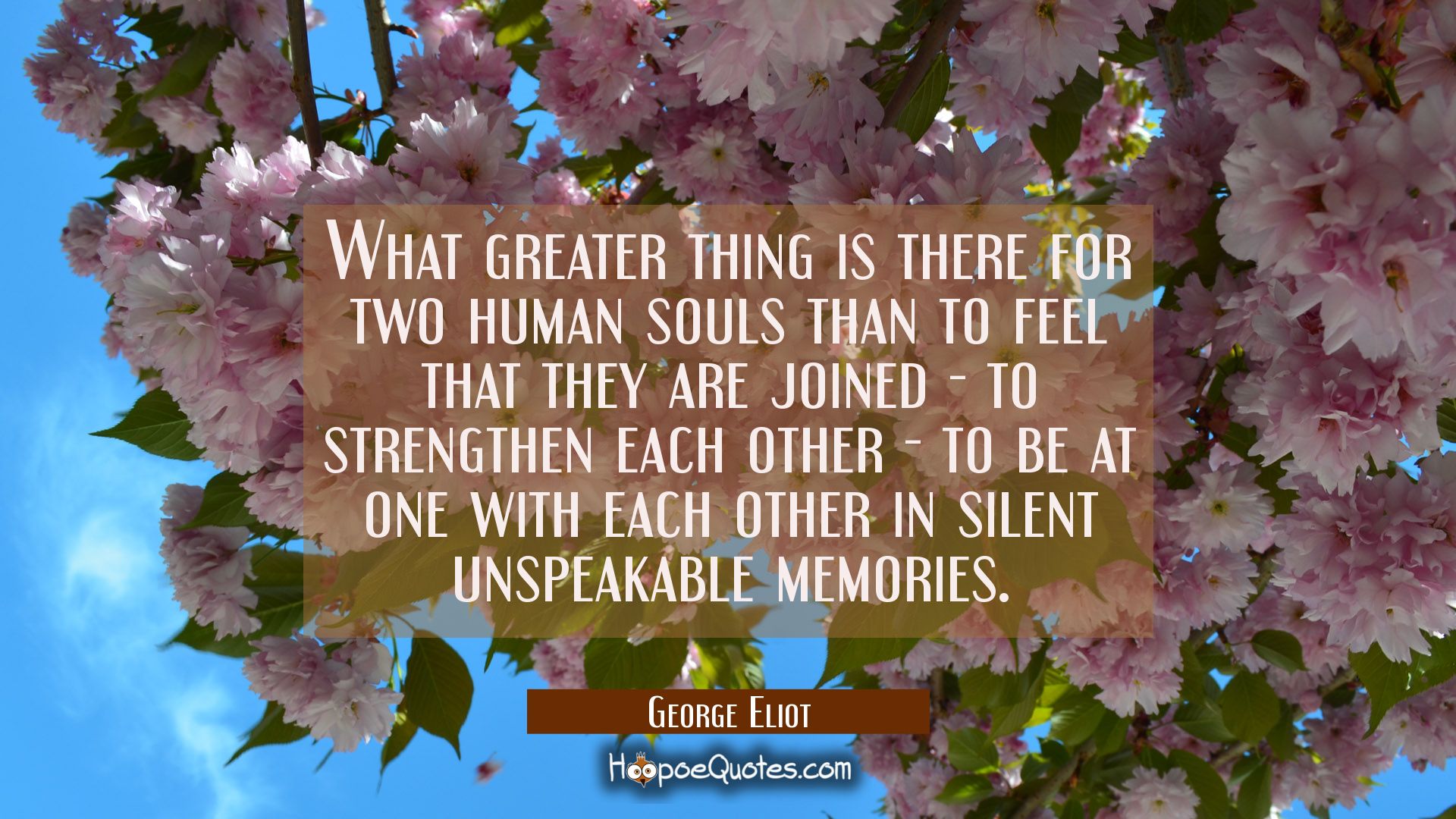 What greater thing is there for two human souls than to feel that they are joined - to strengthen each other - to be at one with each other in silent unspeakable memories.