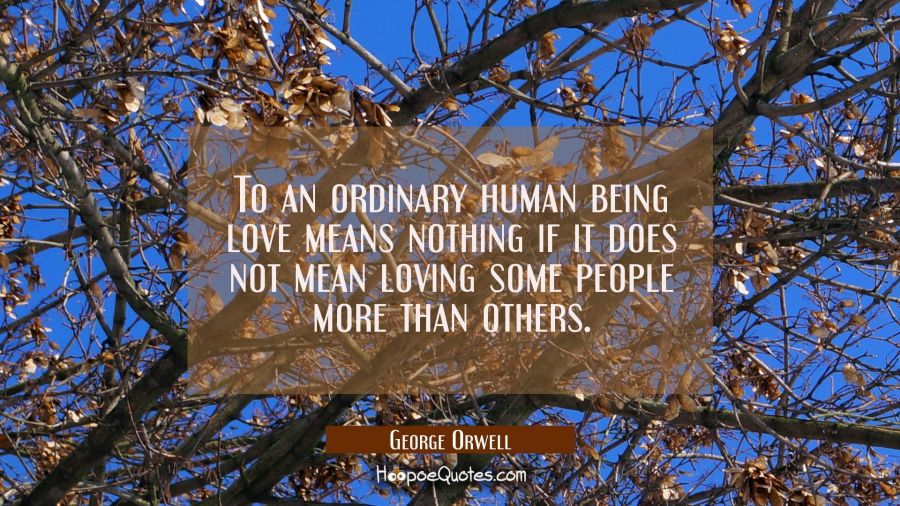 To an ordinary human being love means nothing if it does not mean loving some people more than others.