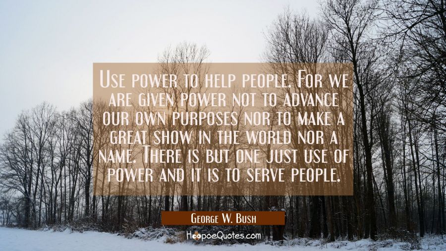 Use power to help people. For we are given power not to advance our own purposes nor to make a great show in the world nor a name. There is but one just use of power and it is to serve people.