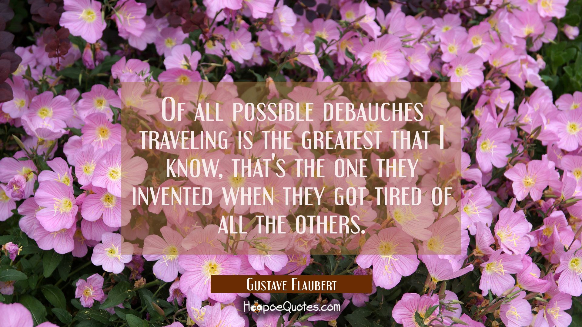Of all possible debauches traveling is the greatest that I know, that's the one they invented when they got tired of all the others.