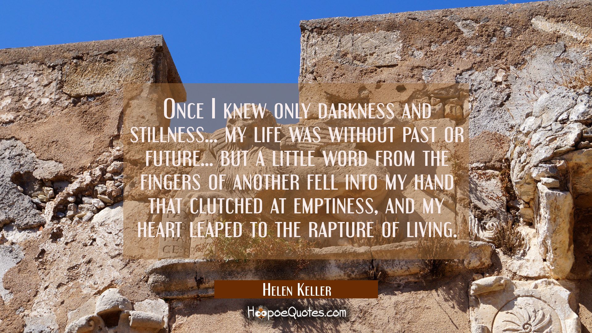 Once I knew only darkness and stillness... my life was without past or future... but a little word from the fingers of another fell into my hand that clutched at emptiness, and my heart leaped to the rapture of living.