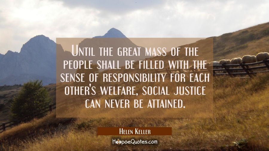 Until the great mass of the people shall be filled with the sense of responsibility for each other's welfare, social justice can never be attained.