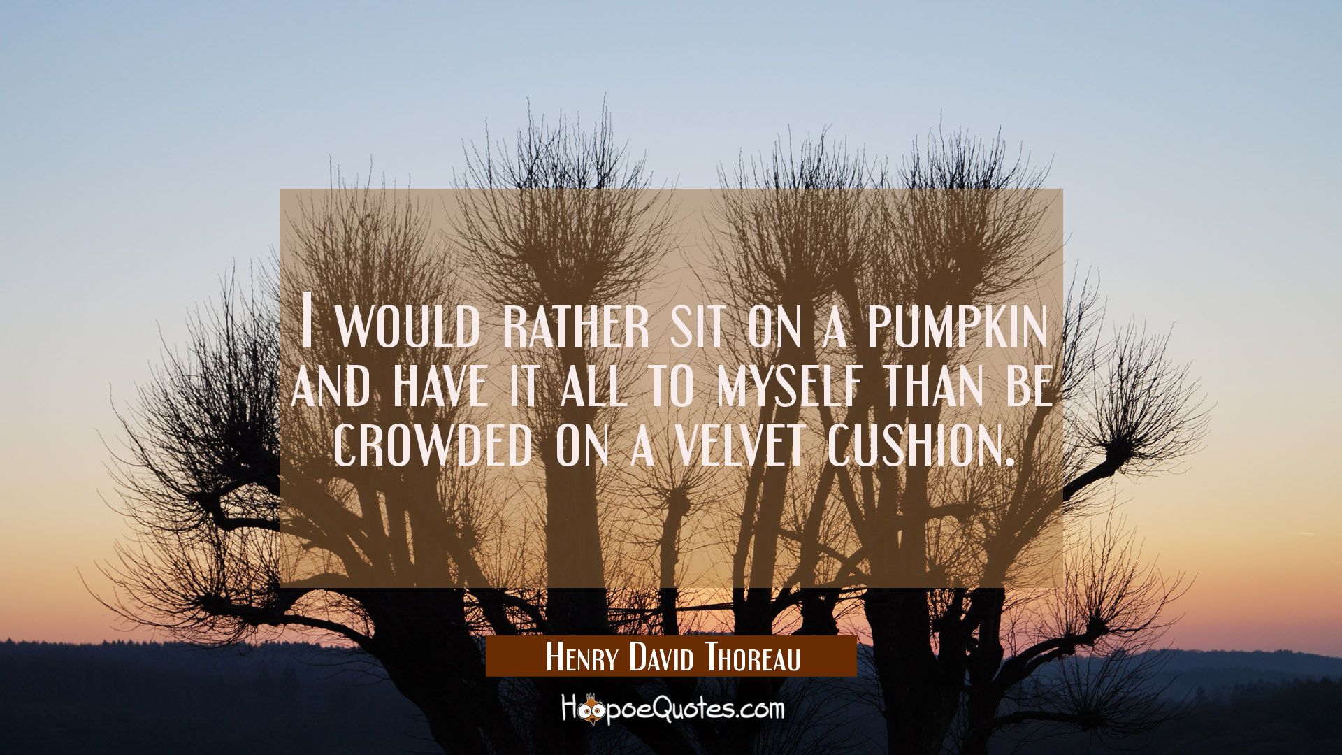 I would rather sit on a pumpkin and have it all to myself than be crowded on a velvet cushion.