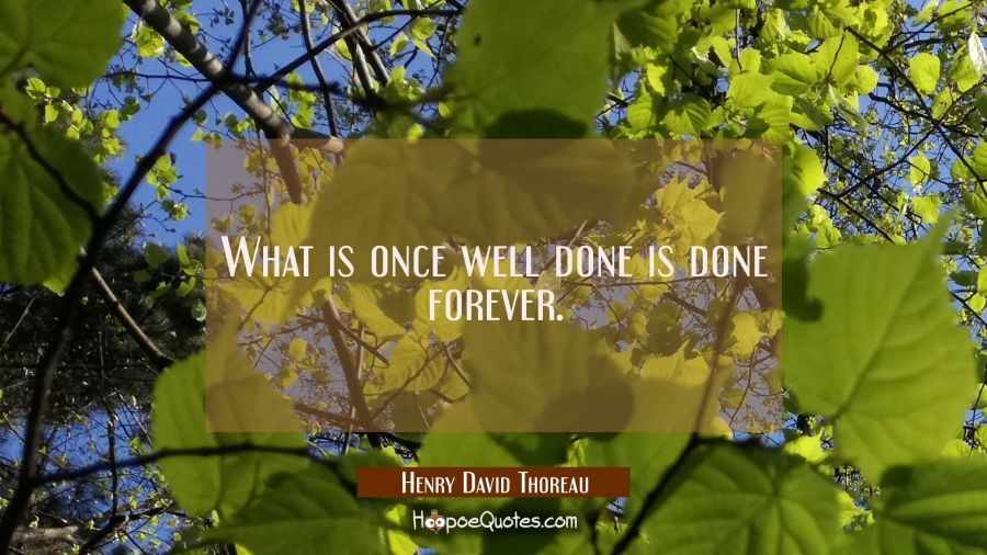 What is once well done is done forever.