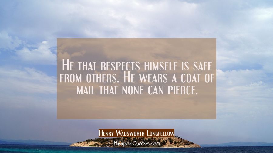 He that respects himself is safe from others. He wears a coat of mail that none can pierce.