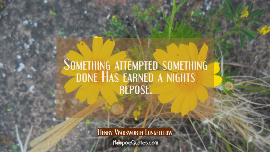 Something attempted something done Has earned a nights repose.