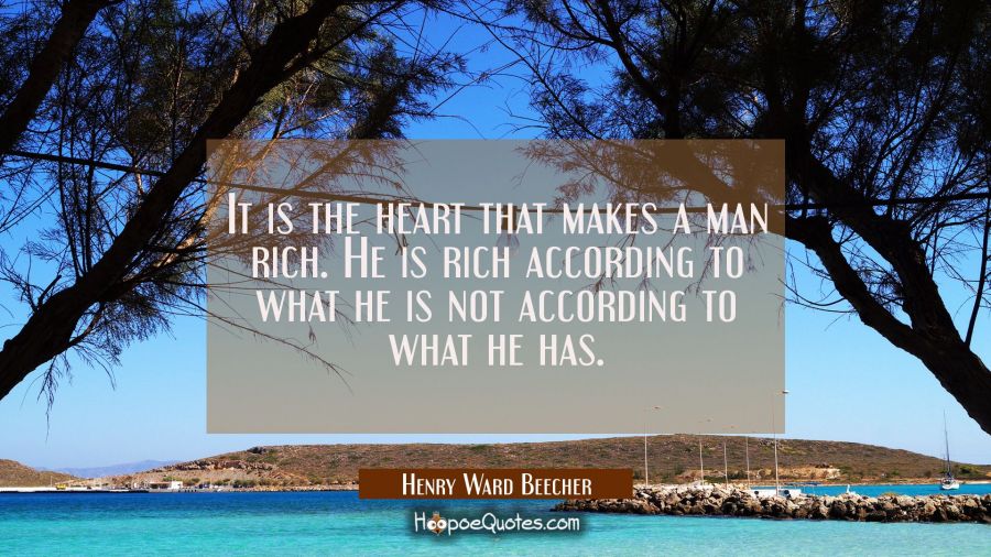 It is the heart that makes a man rich. He is rich according to what he is not according to what he has.
