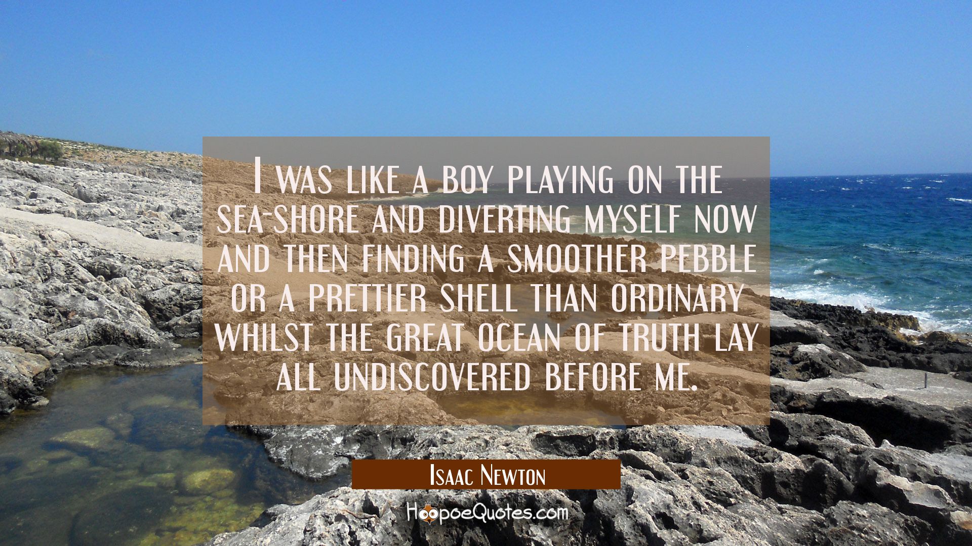 I was like a boy playing on the sea-shore and diverting myself now and then finding a smoother pebble or a prettier shell than ordinary whilst the great ocean of truth lay all undiscovered before me.