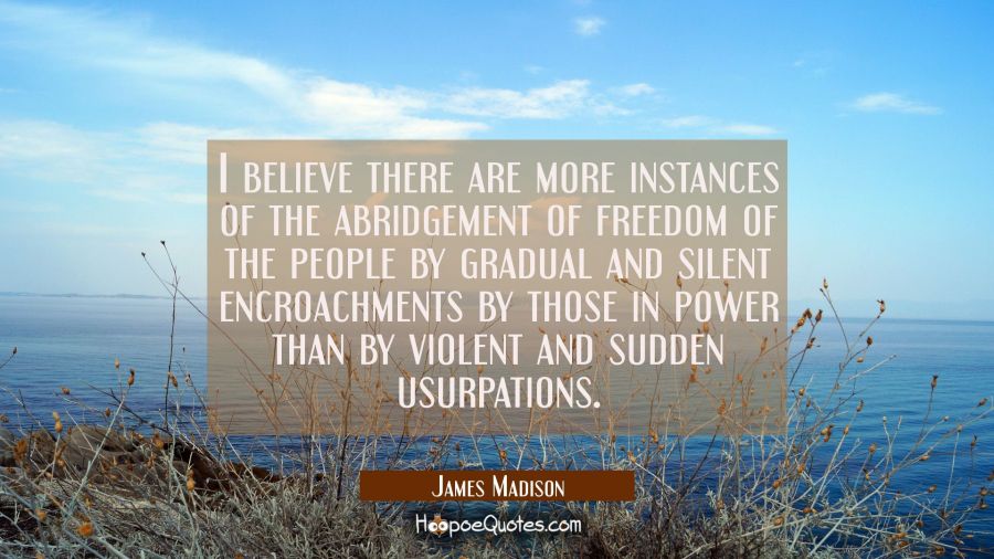 I believe there are more instances of the abridgement of freedom of the people by gradual and silent encroachments by those in power than by violent and sudden usurpations.