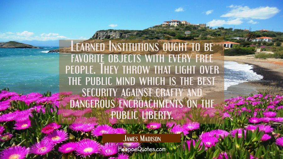 Learned Institutions ought to be favorite objects with every free people. They throw that light over the public mind which is the best security against crafty and dangerous encroachments on the public liberty.