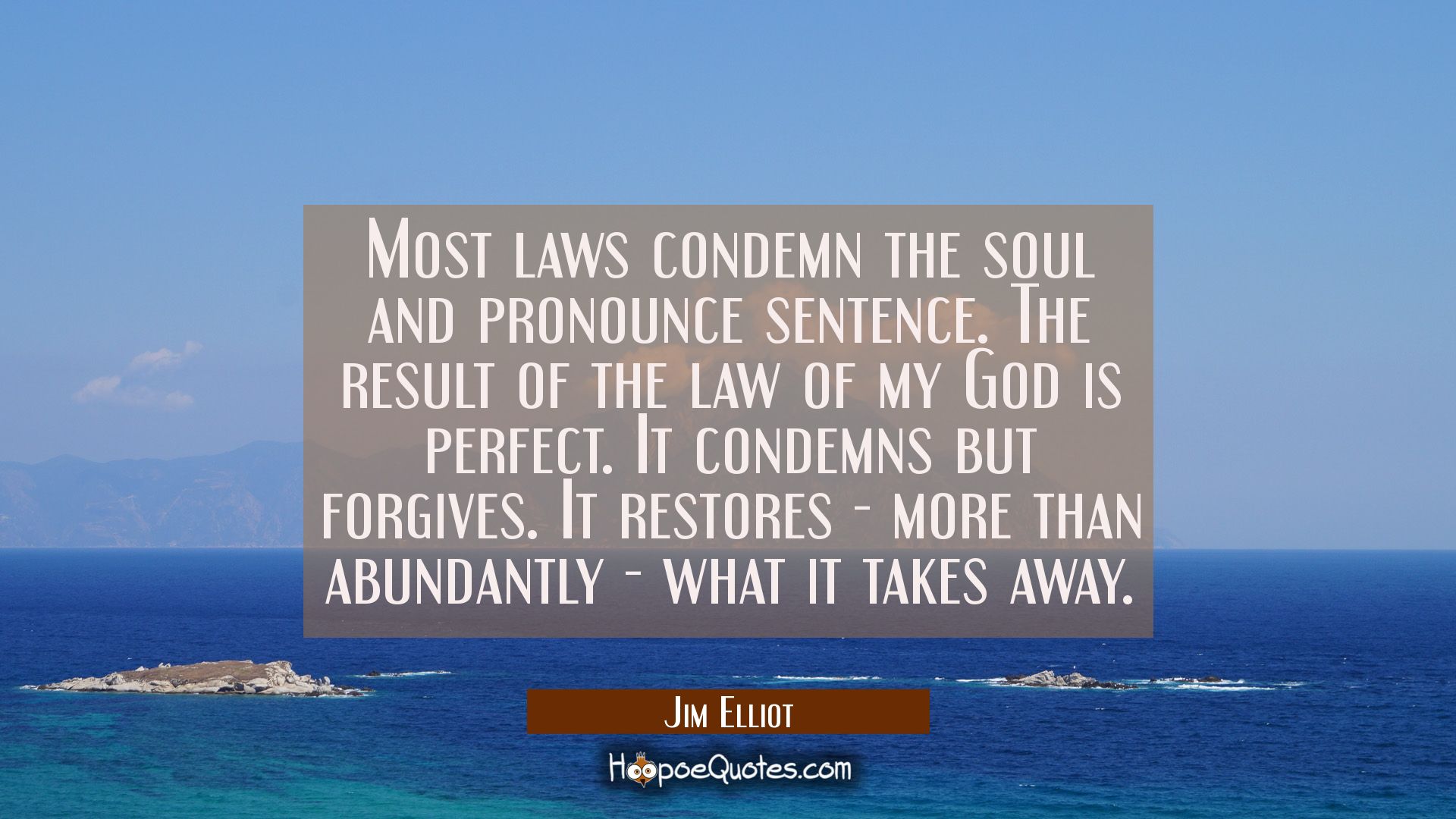 Most laws condemn the soul and pronounce sentence. The result of the law of my God is perfect. It condemns but forgives. It restores - more than abundantly - what it takes away.