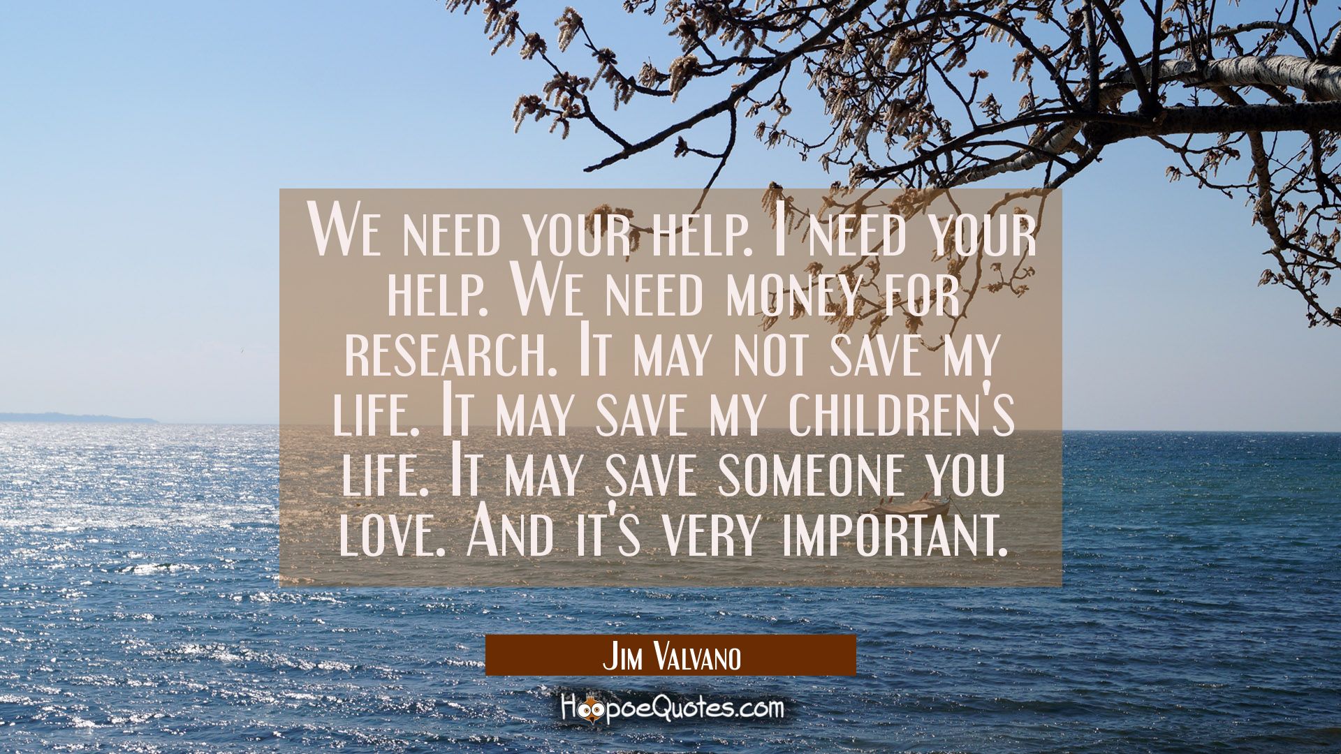 We need your help. I need your help. We need money for research. It may not save my life. It may save my children's life. It may save someone you love. And it's very important.