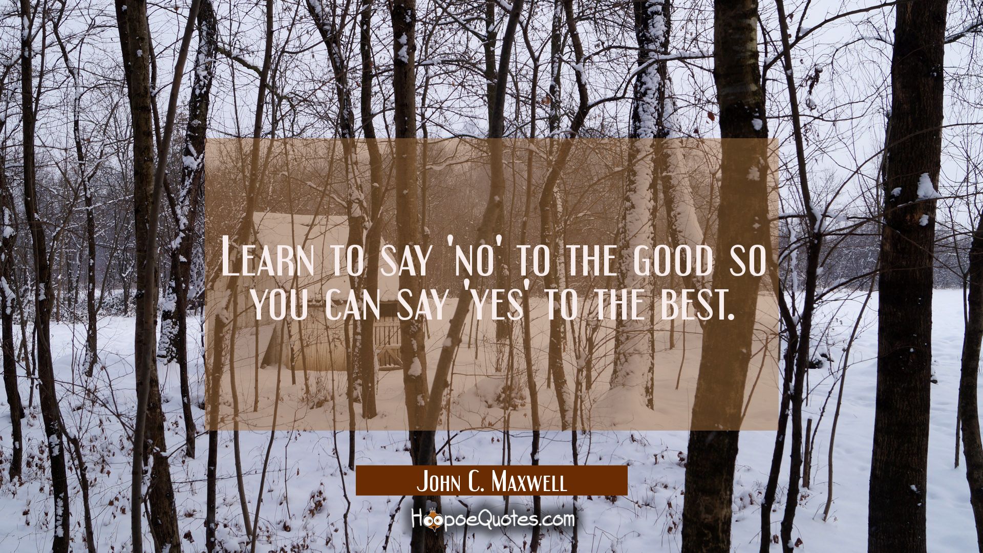 Learn to say 'no' to the good so you can say 'yes' to the best.