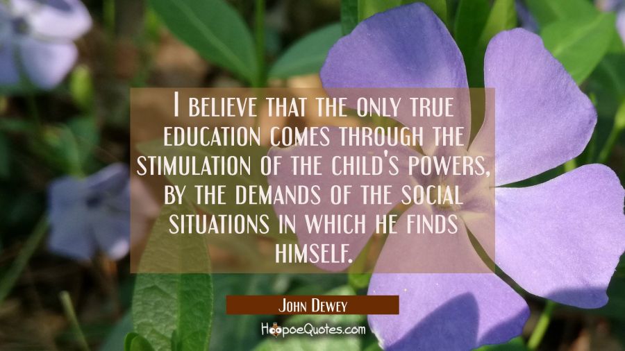 I believe that the only true education comes through the stimulation of the child's powers, by the demands of the social situations in which he finds himself.