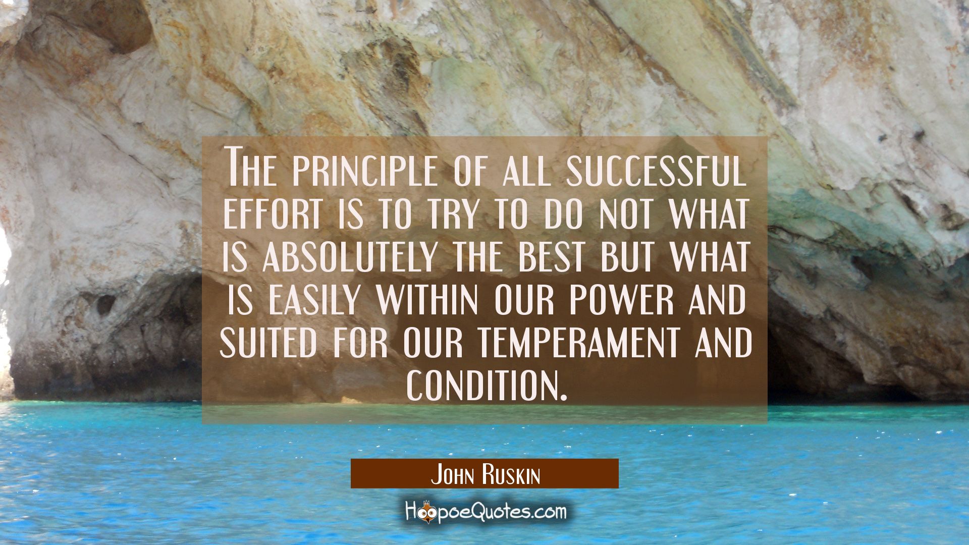 The principle of all successful effort is to try to do not what is absolutely the best but what is easily within our power and suited for our temperament and condition.
