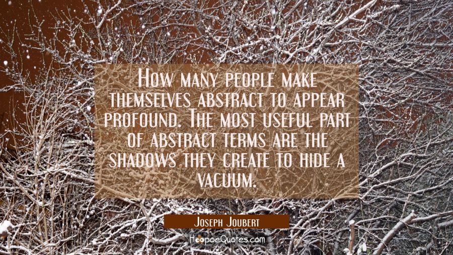 How many people make themselves abstract to appear profound. The most useful part of abstract terms are the shadows they create to hide a vacuum.