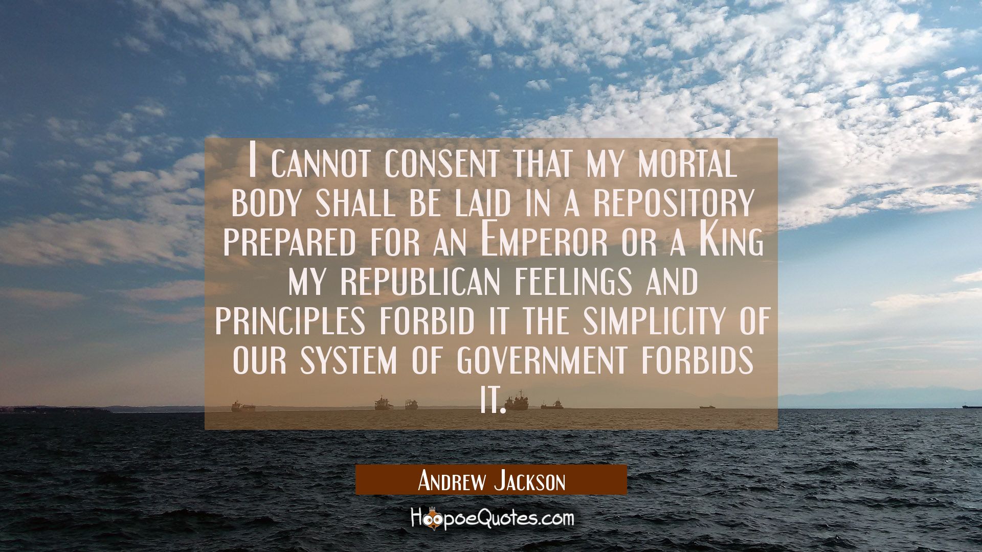 I cannot consent that my mortal body shall be laid in a repository prepared for an Emperor or a King my republican feelings and principles forbid it the simplicity of our system of government forbids it.