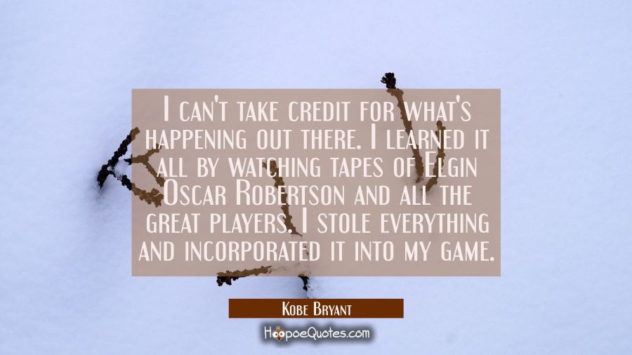 I can't take credit for what's happening out there. I learned it all by watching tapes of Elgin Oscar Robertson and all the great players. I stole everything and incorporated it into my game.