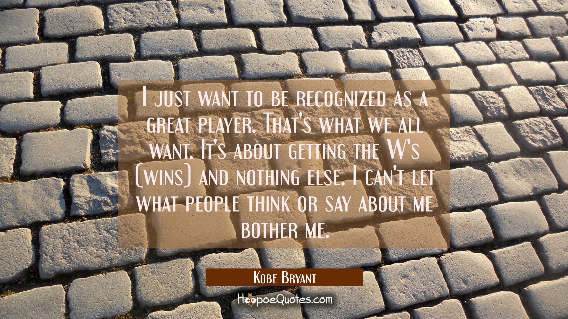I just want to be recognized as a great player. That's what we all want. It's about getting the W's (wins) and nothing else. I can't let what people think or say about me bother me.