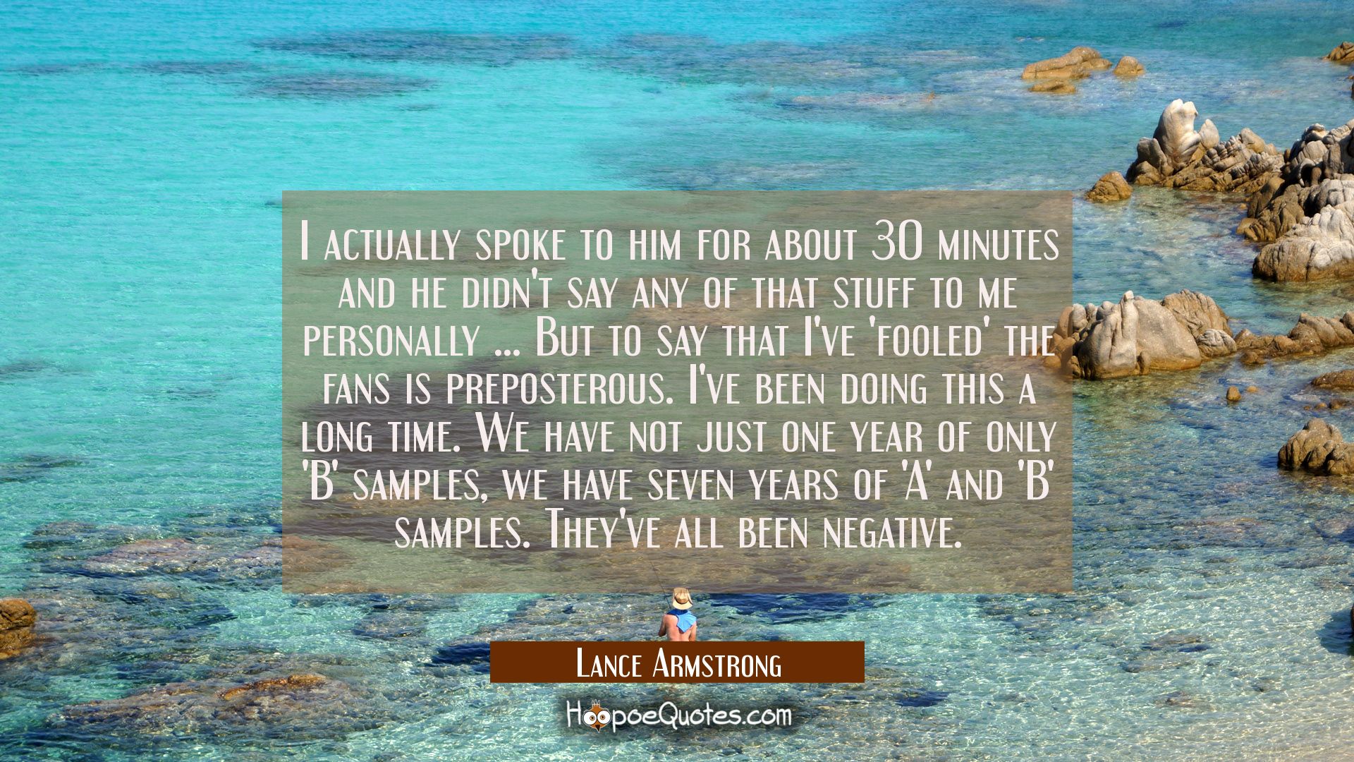 I actually spoke to him for about 30 minutes and he didn't say any of that stuff to me personally ... But to say that I've 'fooled' the fans is preposterous. I've been doing this a long time. We have not just one year of only 'B' samples, we have seven years of 'A' and 'B' samples. They've all been negative.