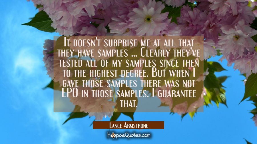 It doesn't surprise me at all that they have samples ... Clearly they've tested all of my samples since then to the highest degree. But when I gave those samples there was not EPO in those samples. I guarantee that.