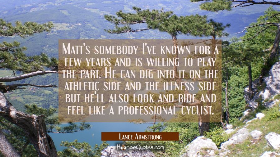 Matt's somebody I've known for a few years and is willing to play the part. He can dig into it on the athletic side and the illness side but he'll also look and ride and feel like a professional cyclist.