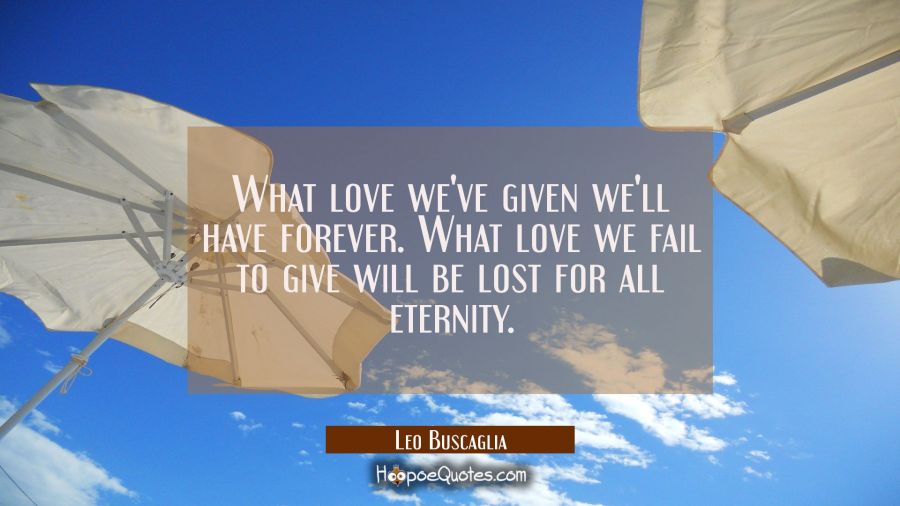 What love we've given we'll have forever. What love we fail to give will be lost for all eternity.