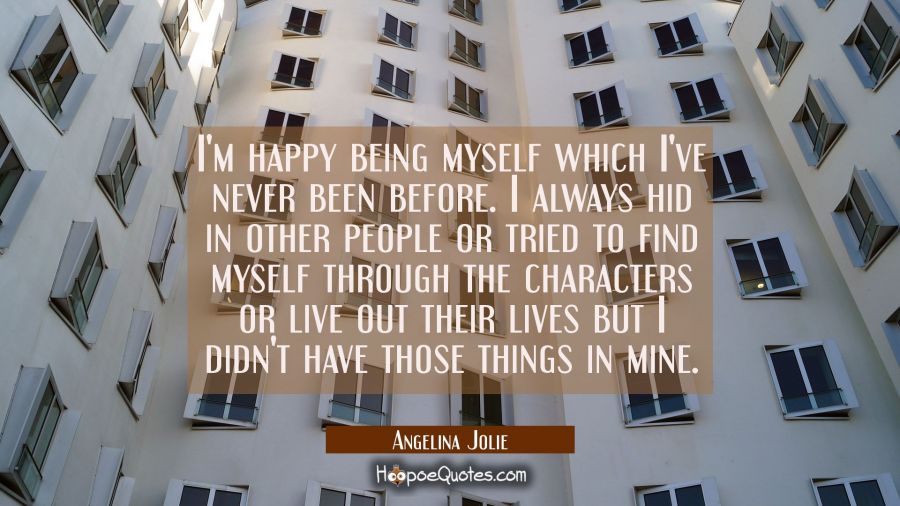 I'm happy being myself which I've never been before. I always hid in other people or tried to find myself through the characters or live out their lives but I didn't have those things in mine.