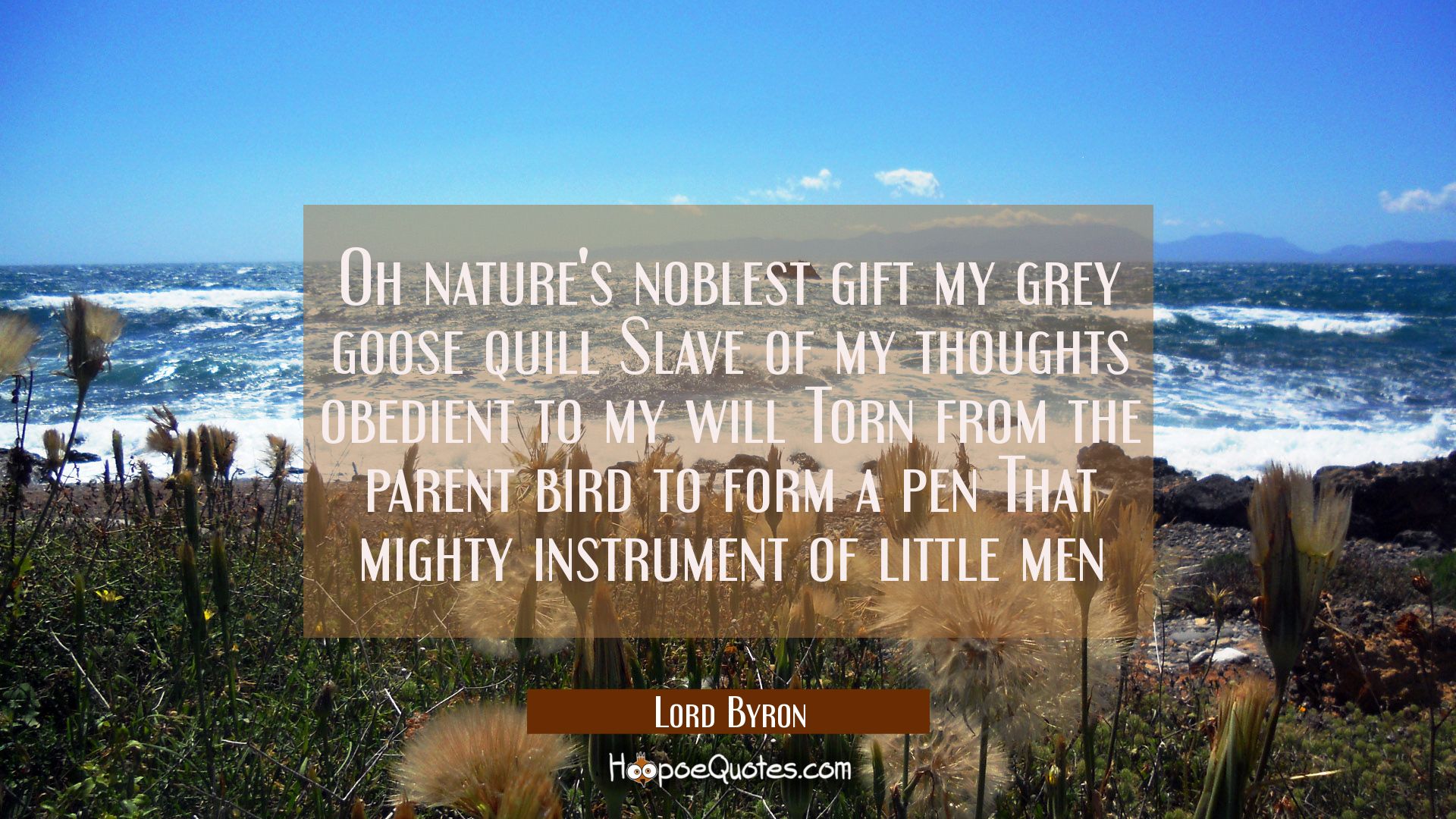 Oh nature's noblest gift my grey goose quill Slave of my thoughts obedient to my will Torn from the parent bird to form a pen That mighty instrument of little men