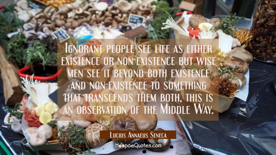 Ignorant people see life as either existence or non-existence but wise men see it beyond both existence and non-existence to something that transcends them both, this is an observation of the Middle Way.