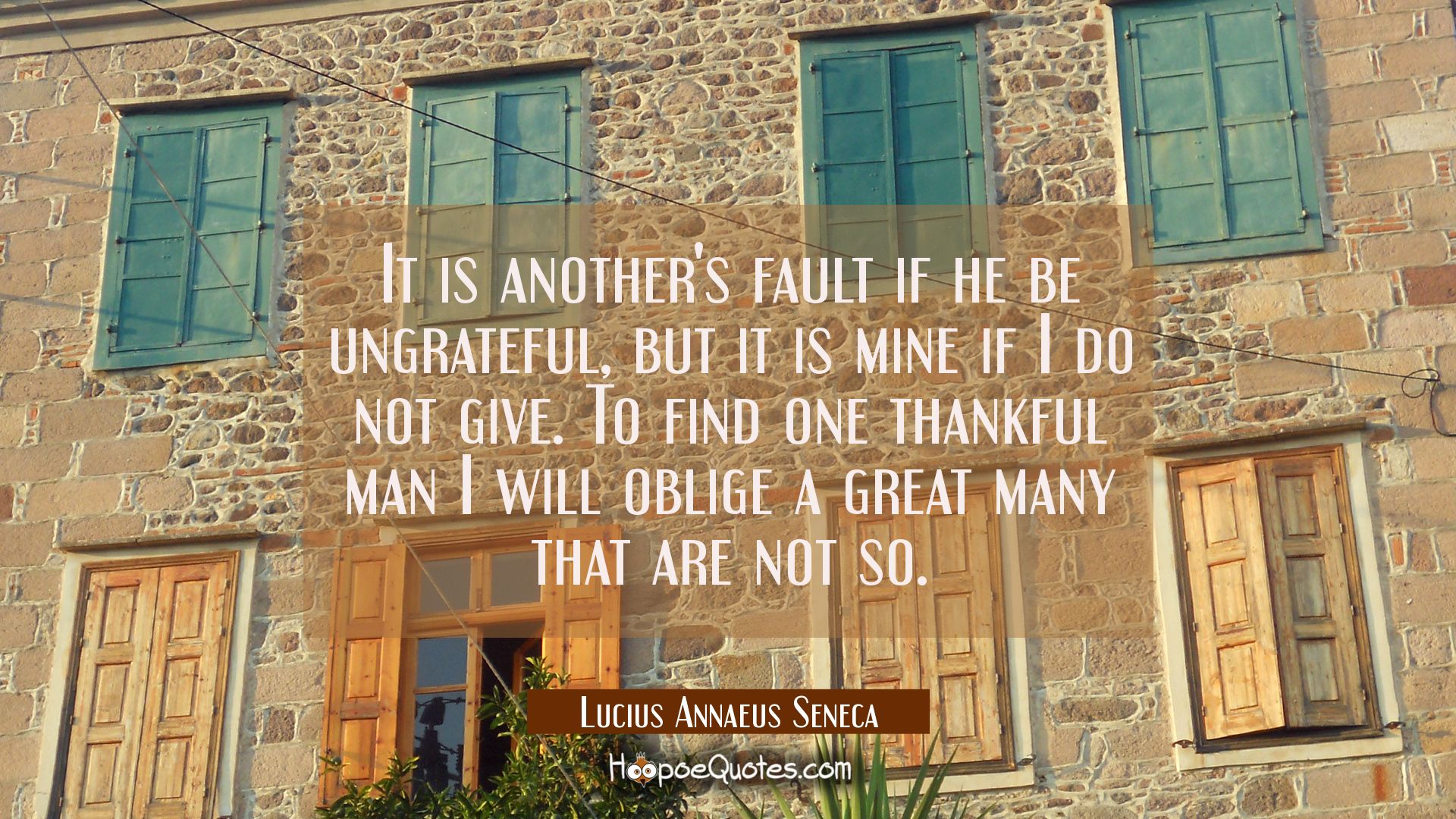 It is another's fault if he be ungrateful, but it is mine if I do not give. To find one thankful man I will oblige a great many that are not so.
