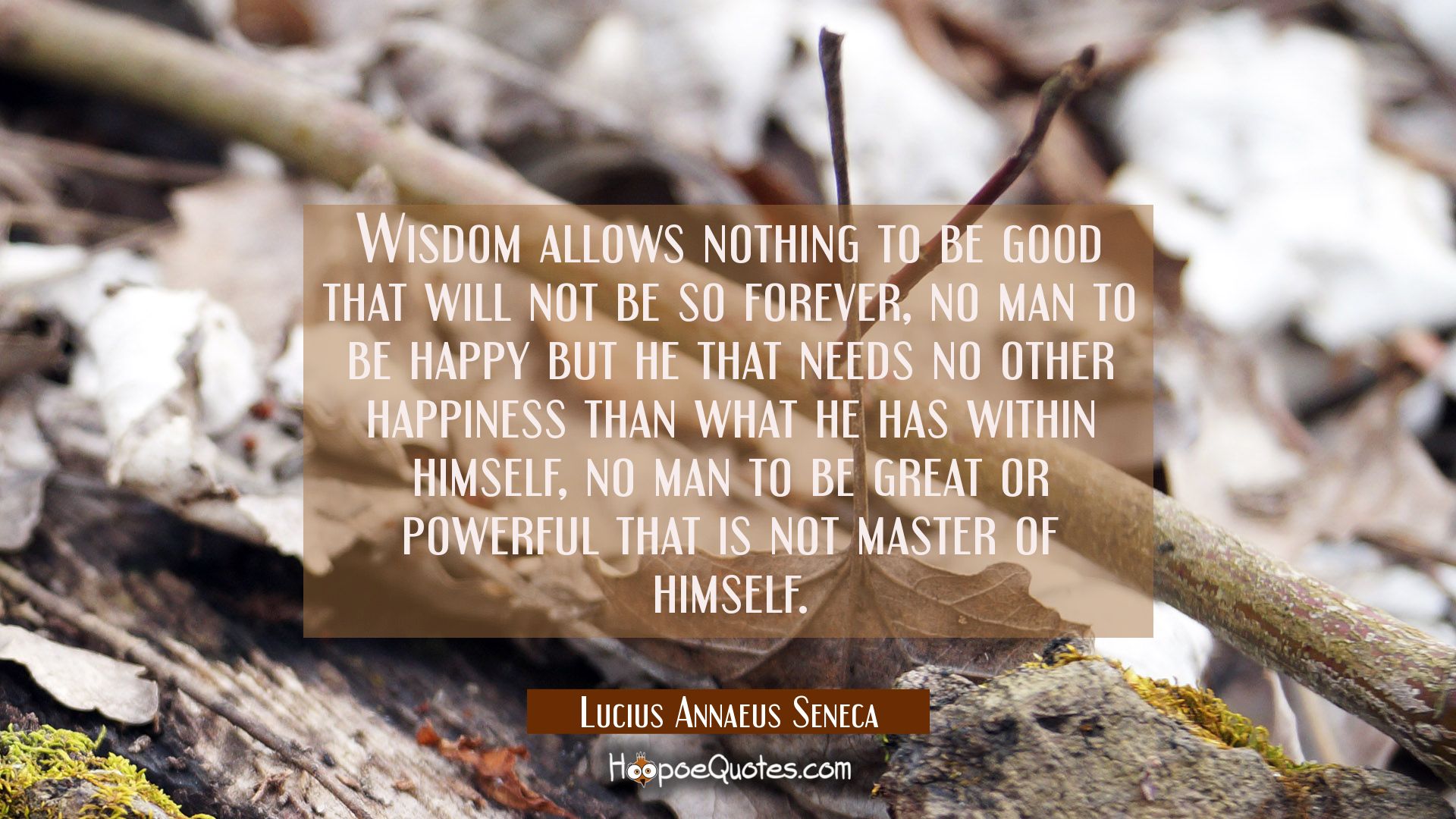 Wisdom allows nothing to be good that will not be so forever, no man to be happy but he that needs no other happiness than what he has within himself, no man to be great or powerful that is not master of himself.