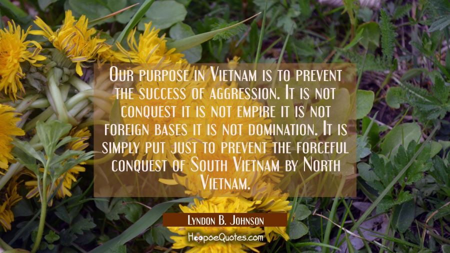Our purpose in Vietnam is to prevent the success of aggression. It is not conquest it is not empire it is not foreign bases it is not domination. It is simply put just to prevent the forceful conquest of South Vietnam by North Vietnam.