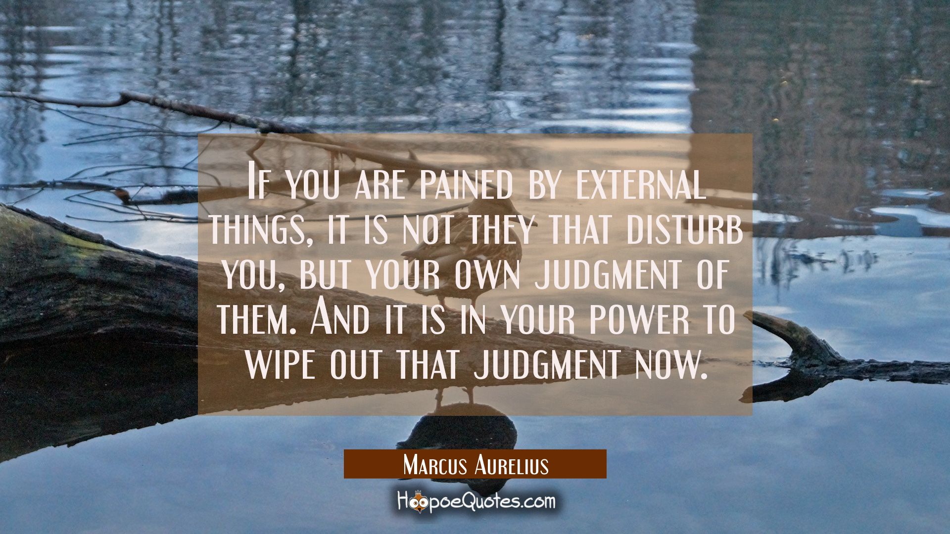 If you are pained by external things, it is not they that disturb you, but your own judgment of them. And it is in your power to wipe out that judgment now.