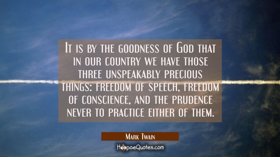 It is by the goodness of God that in our country we have those three unspeakably precious things: freedom of speech, freedom of conscience, and the prudence never to practice either of them.