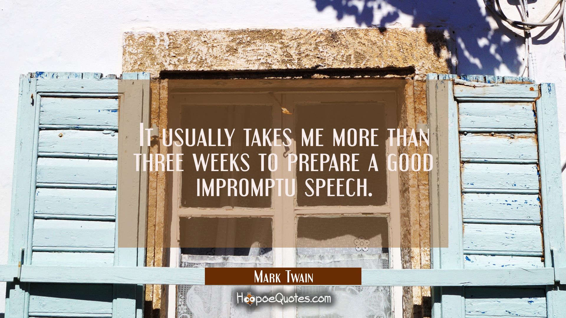 It usually takes me more than three weeks to prepare a good impromptu speech.
