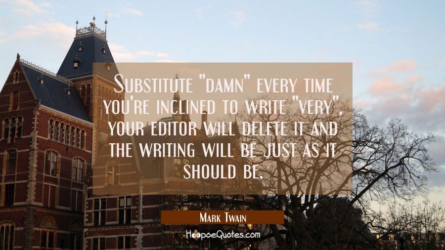 Substitute "damn" every time you're inclined to write "very", your editor will delete it and the writing will be just as it should be.