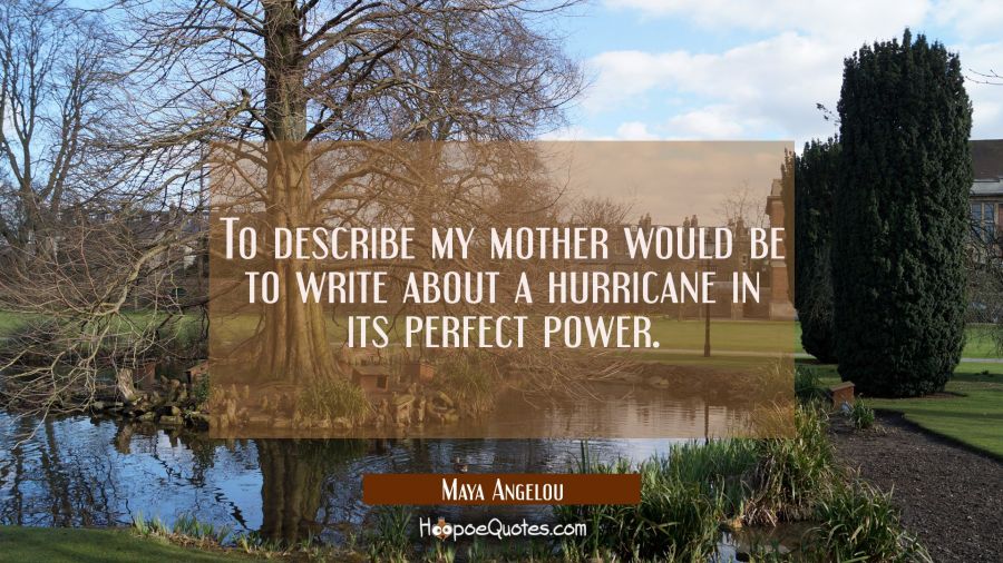 To describe my mother would be to write about a hurricane in its perfect power.