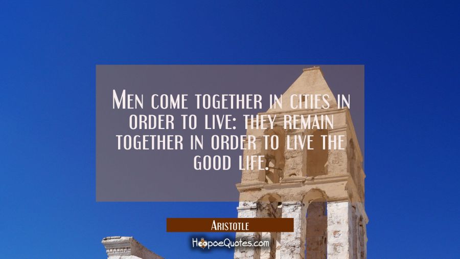 Men come together in cities in order to live: they remain together in order to live the good life.